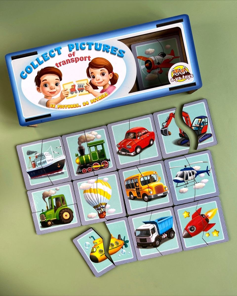 Опис Пазл "Половинки. Види транспорту"