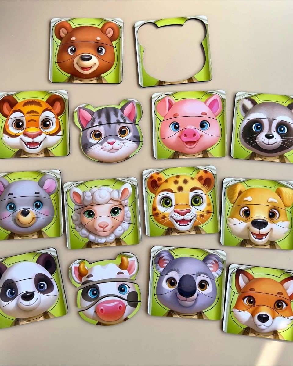 Пазл "Збери тваринок" - у наборі 39 деталей та 13 карток з тваринами. Завдання малюка: зібрати тваринку, як на малюнку. Також за допомогою елементів набору можна створити власних тварин.