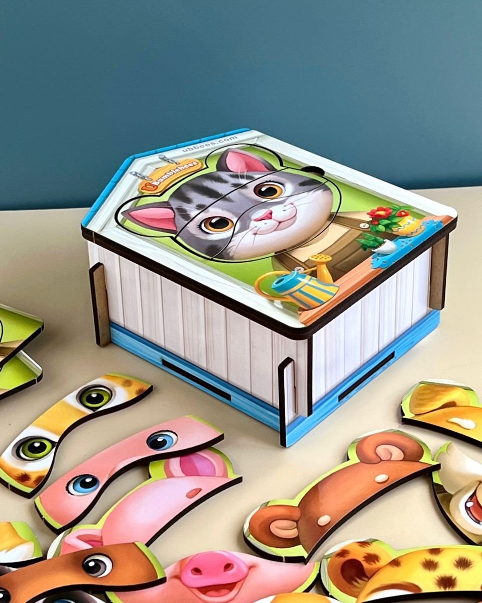 Бренд: Ubee Упаковка: Плівка Колір: Різнобарв'я Вага з упаковкою: 510 г Габарити в упаковці: 12 x 7 x 15 см Країна виробник: Україна Матеріал: Дерево Комплектація: 39 деталей та 13 карток з тваринами