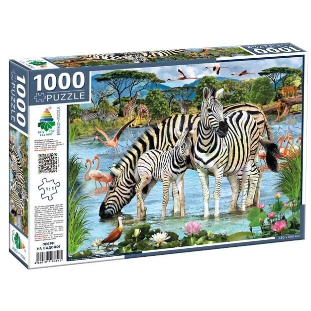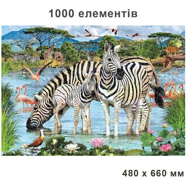 Опис Пазли "Зебри на водопої", 1000 елементів, 66 х 48 см