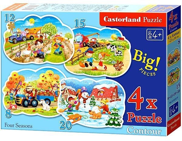 Барвисті пазли 4 в 1 "Дачна життя" на 8, 15, 12 і 20 елементів. Розмір готової картинки: 29 х 19,7 см.