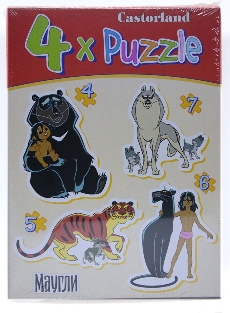 Барвисті пазли 4 в 1 "Мауглі" на 4, 5, 6 і 7 елементів. Розмір готової картинки: 23 x 16,5 см.