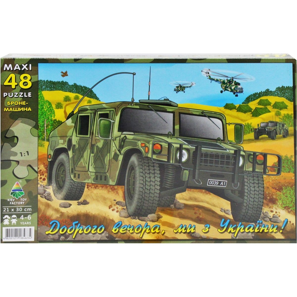 Пазли Бронемашина. Мають 48 елементів. Можуть відволікати та заспокоювати. Є чудовим набором для творчості. Картинка в патріотичній тематиці.