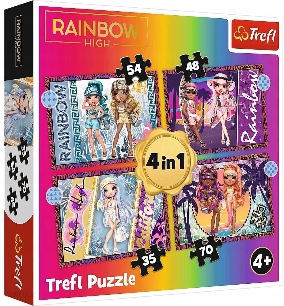 Яскраві та барвисті пазли 4в1. У наборі є 4 картинки на різну кількість деталей – на 54, 48, 35 та 70 елементів. Мають великі деталі. Пазли розвивають логічне мислення, дрібну моторику рук, посидючість. Набір виконаний із якісних та безпечних матеріалів. Для дітей віком від 4-х років.