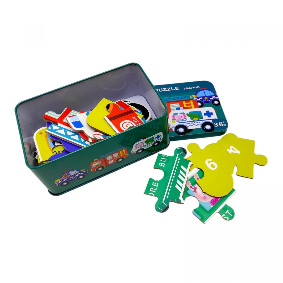 Опис Пазли дитячі "Транспорт", деревʼяні, 6 пазлів, пронумеровані, в боксі