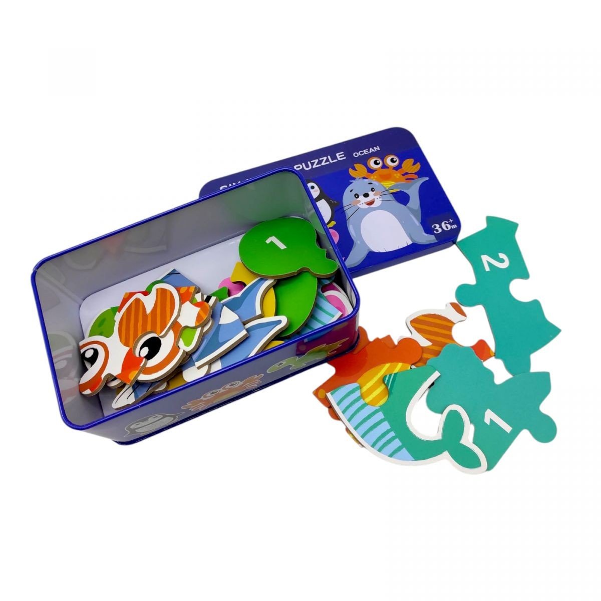 Опис Пазли дитячі "Океан", деревʼяні, 6 пазлів, пронумеровані, в боксі