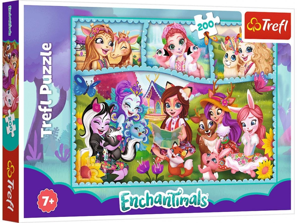 Яскраві і барвисті пазли "Еnchantimals" на 200 елементів. Виготовлені з якісного, щільного картону. Розвивають логічне мислення, дрібну моторику рук, посидючість. Розмір готового зображення: 48 х 34 см.