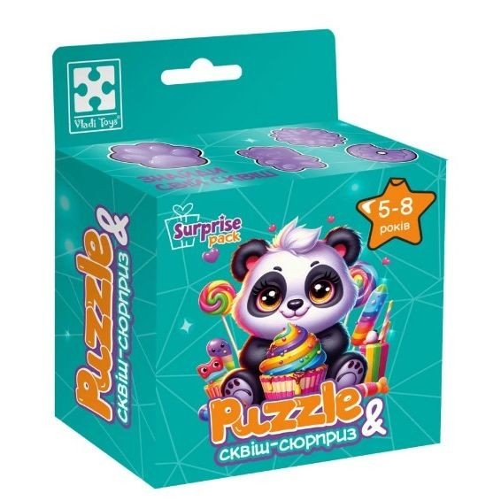 Бренд: Vladi Toys Вік: 5 років Упаковка: Коробка Колір: Різнобарв'я Вага з упаковкою: 115 г Габарити в упаковці: 5.5 x 10.5 x 14 см Країна виробник: Україна Матеріал: Комбінований Комплектація: сквіш, пазли