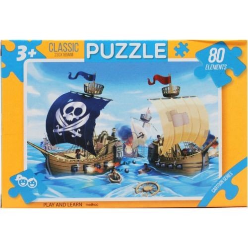 Яскраві барвисті пазли на 80 елементів, з зображенням казкових персонажів. Розмір готової картинки: 23 х 16,5 см.