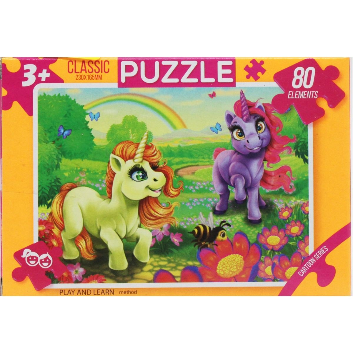 Яскраві барвисті пазли на 80 елементів, з зображенням казкових персонажів. Розмір готової картинки: 23 х 16,5 см.
