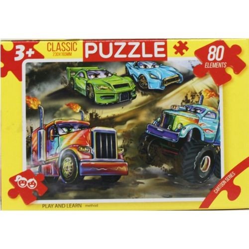Яскраві барвисті пазли на 80 елементів, з зображенням казкових персонажів. Розмір готової картинки: 23 х 16,5 см.