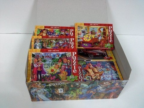 Яскраві барвисті пазли на 80 елементів, з зображенням казкових персонажів. Розмір готової картинки: 23 х 16,5 см.