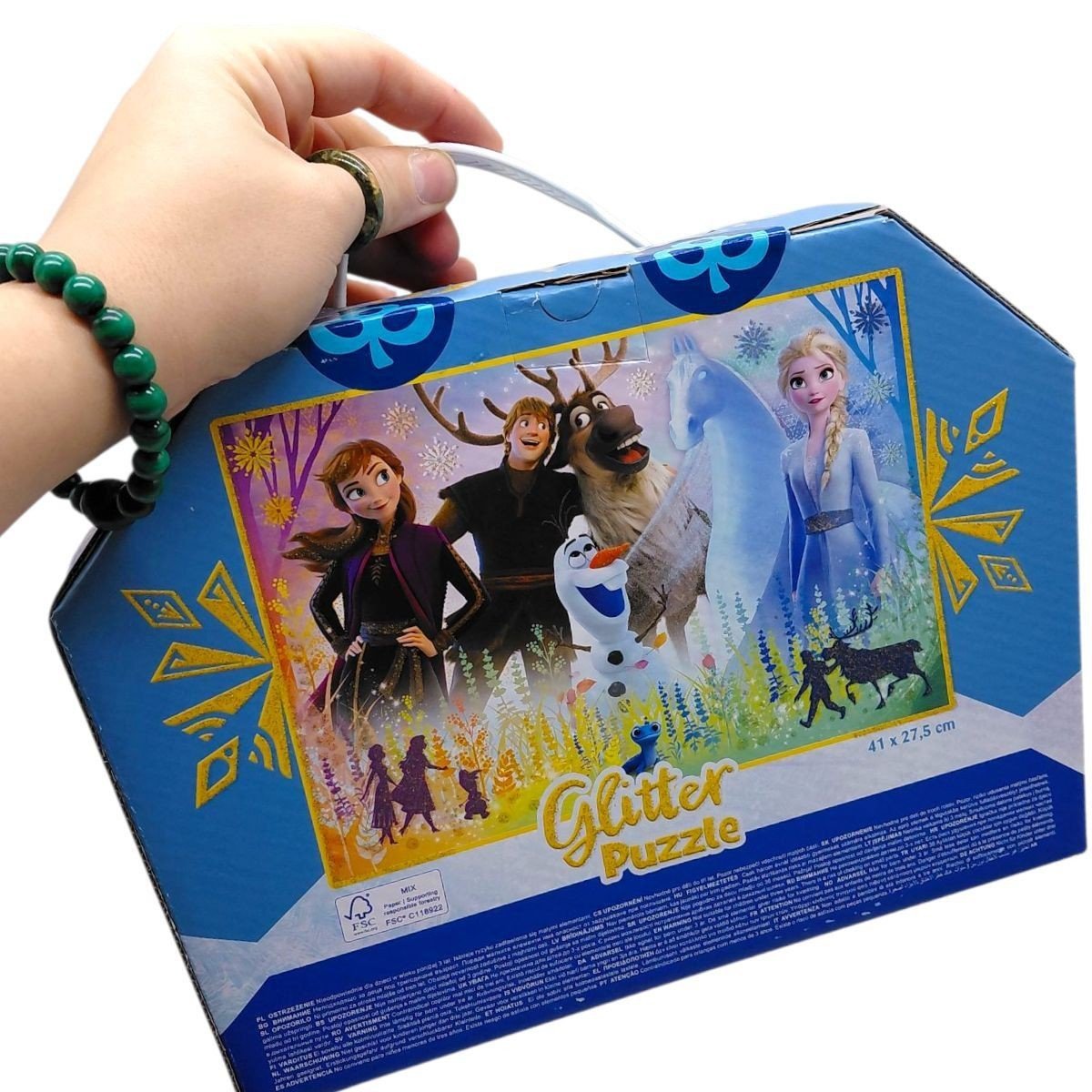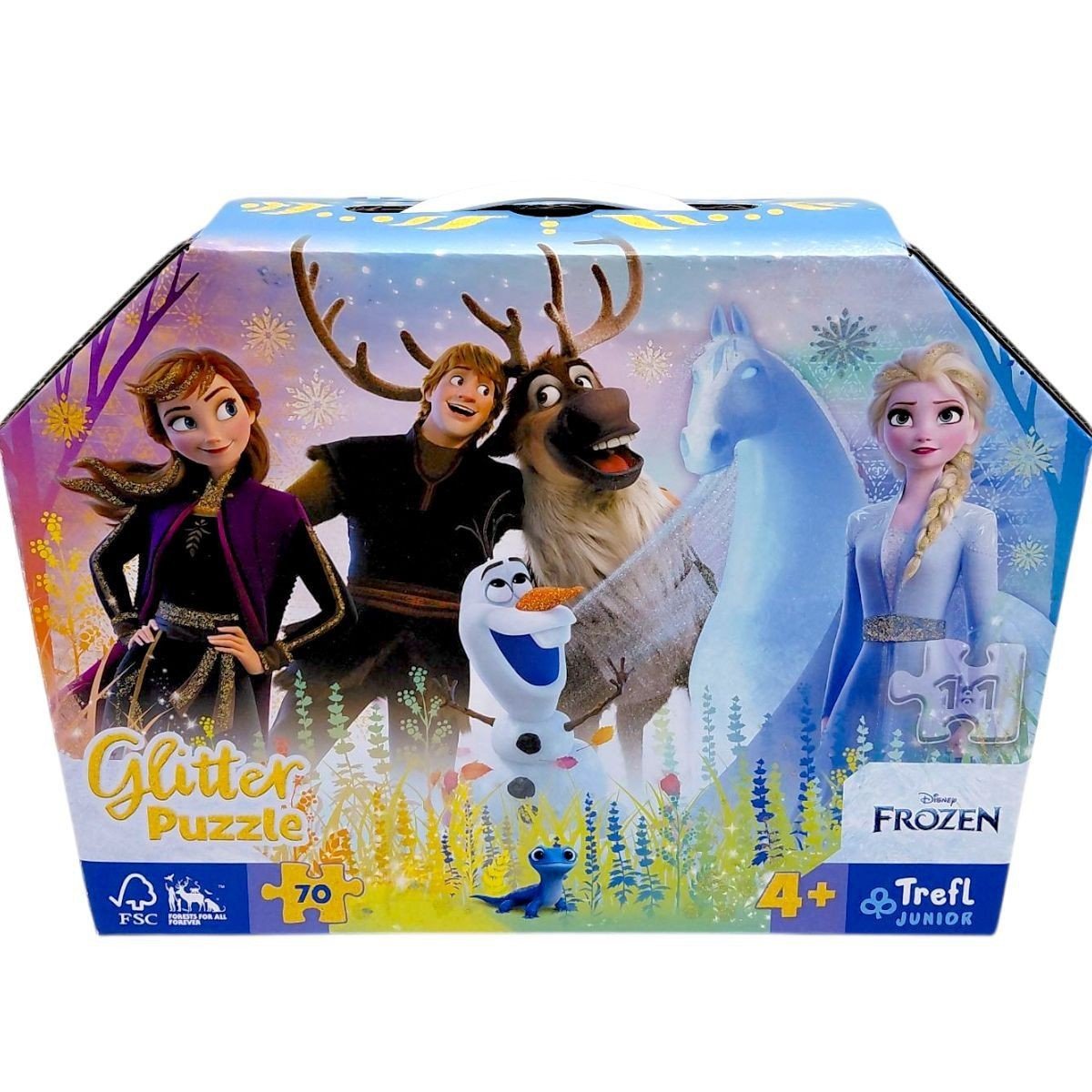 Яскраві та барвисті глітерні пазли на 70 елементів. Виготовлені із якісного, щільного картону. Розвивають логічне мислення, дрібну моторику рук, посидючість. Елементи пазла прикрашені яскравими блискітками. Розмір одного елемента: 3х3 см. Розмір готового зображення: 41 х 27,5 см.