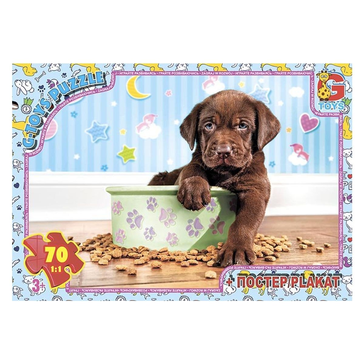 Яскраві пазли на 70 деталей. Розмір картинки: 30 х 21 см. Розвивають логічне мислення, дрібну моторику рук, посидючість. Постер в подарунок.