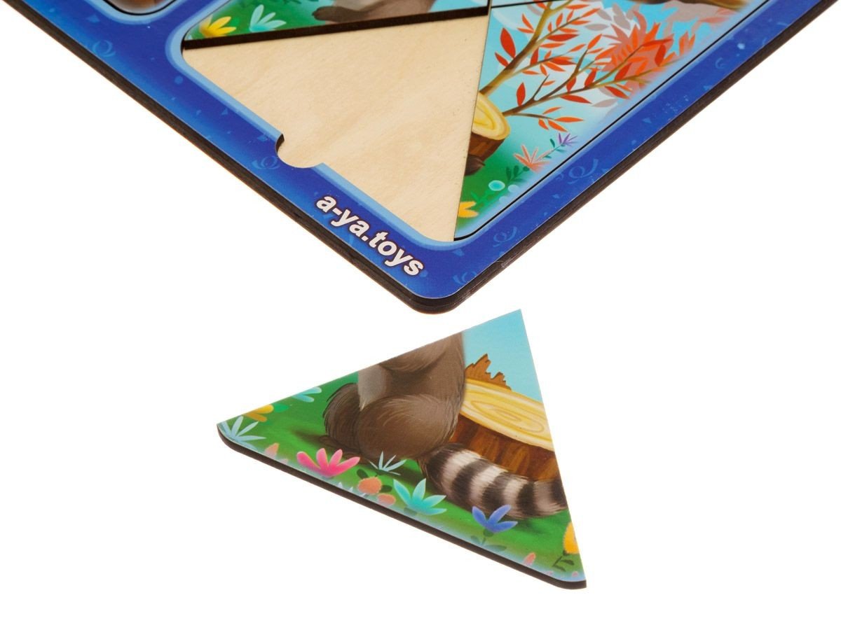 Пазли - вкладиші добре розвивають дрібну моторику рук, логічне мислення та візуальне сприйняття дитини. Головна мета - підібрати відповідні елементи за формою та розмістити на рамці-основі, щоб вийшла готова картинка. У рамці розміщено 2 картинки по 4 елементи. Розмір основи 23х16 см.