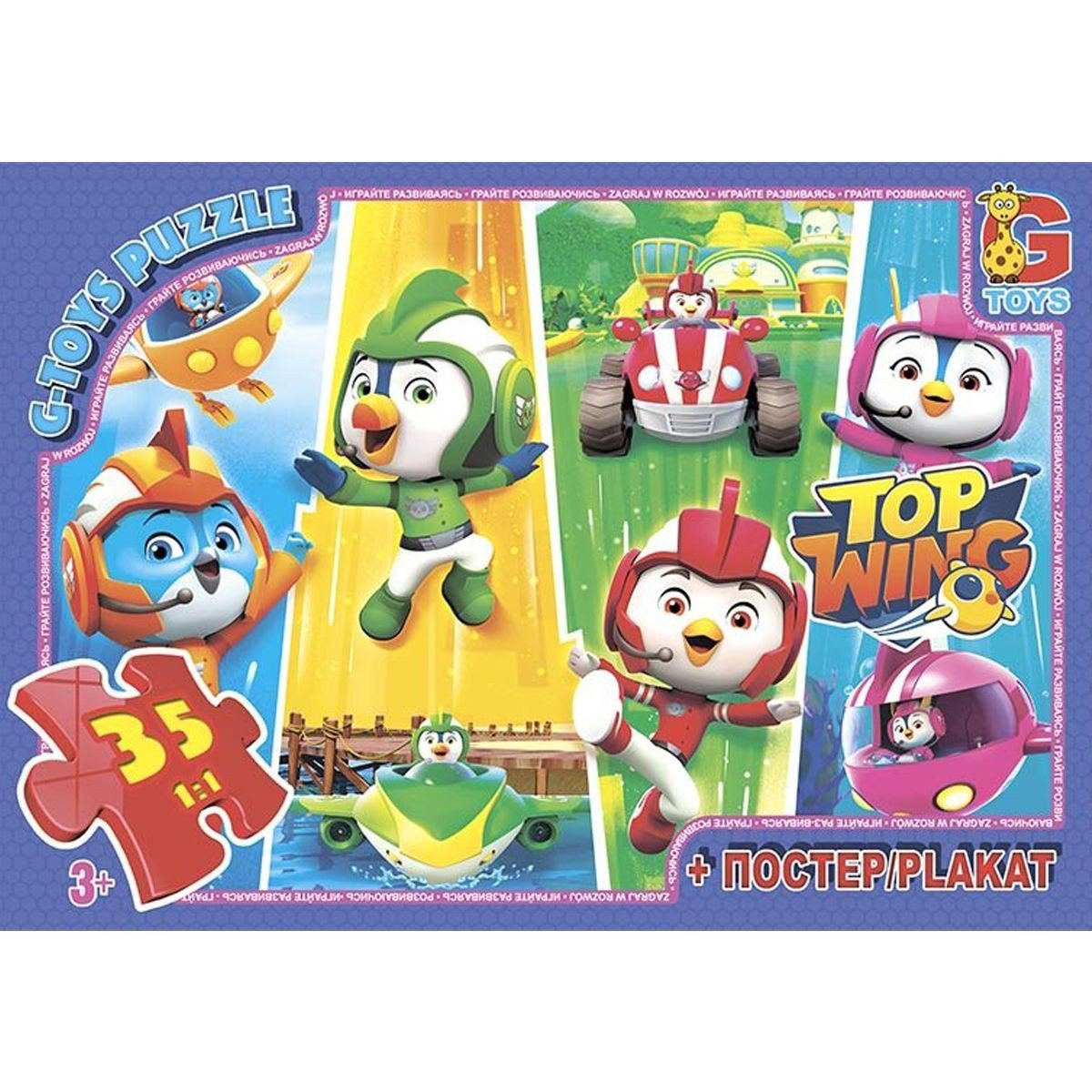 Яскраві пазли на 35 деталей. Розмір картинки: 30 х 21 см. Розвивають логічне мислення, дрібну моторику рук, посидючість. Постер в подарунок.