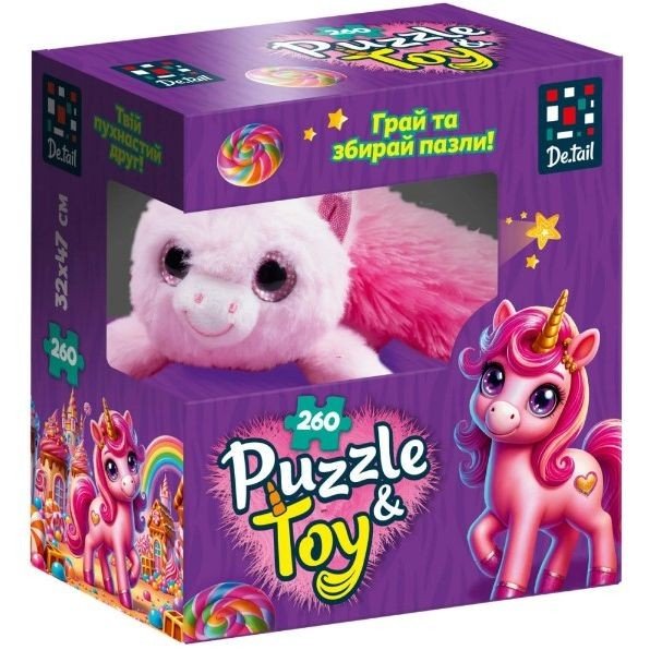 Опис Пазли з мʼякою іграшкою "De.tail. РОЖЕВА ЄДИНОРІЖКА" 260 деталей