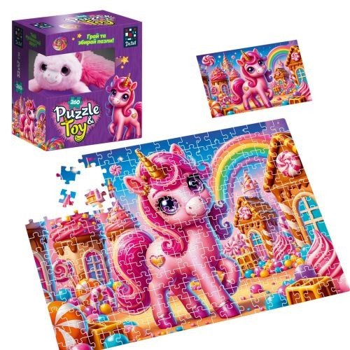 Пазли з м'якою іграшкою "De.tail. Рожевий єдиноріг" 260 деталей
