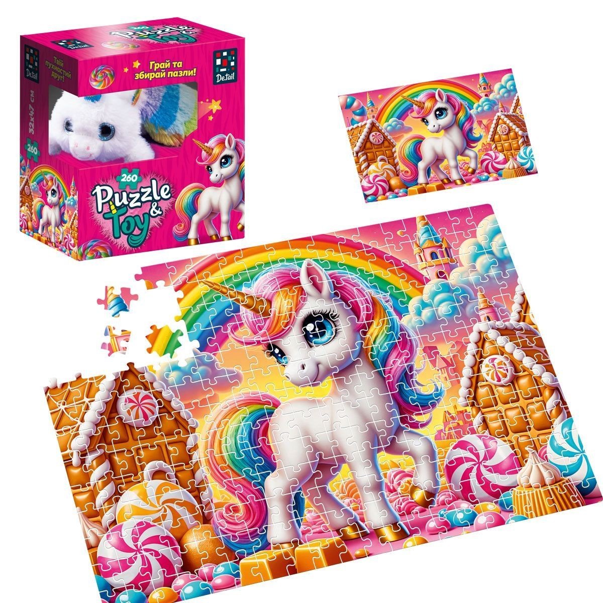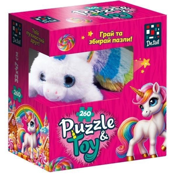 Опис Пазли з мʼякою іграшкою "De.tail. ЄДИНОРІЖКА" 260 деталей