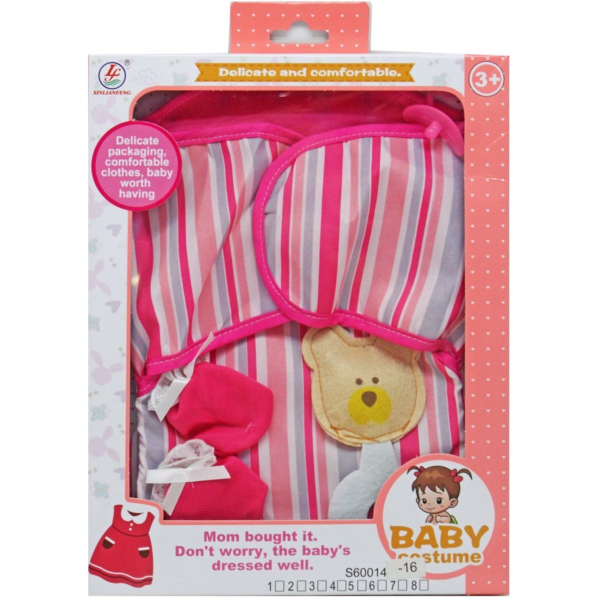 Бренд: MIC Упаковка: Коробка Колір: Рожевий Вага з упаковкою: 170 г Габарити в упаковці: 3 x 22 x 28 см Габарити без упаковки: 2 x 30 x 18 см Країна виробник: Китай Матеріал: Текстиль Комплектація: Пелюшка, соска, шкарпетки, фетрова іграшка