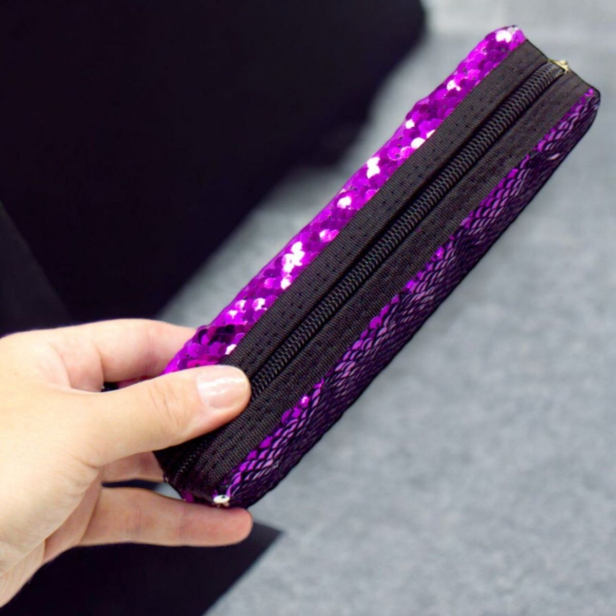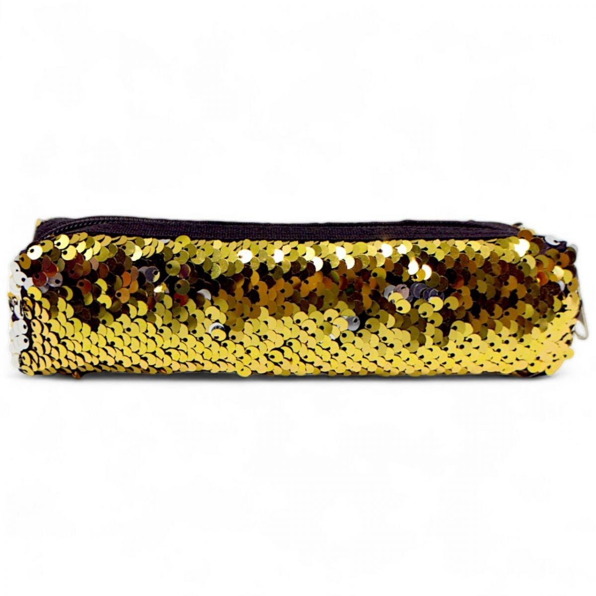 Компактний пенал в оригінальному дизайні. Пенал виконаний з міцного та приємного на дотик матеріалу. Прикрашений яскравими паєтками. Є одне відділення, яке закривається на блискавку. На виробі міцні шви та надійна фурнітура. Розмір: 19х5х4,5 см.