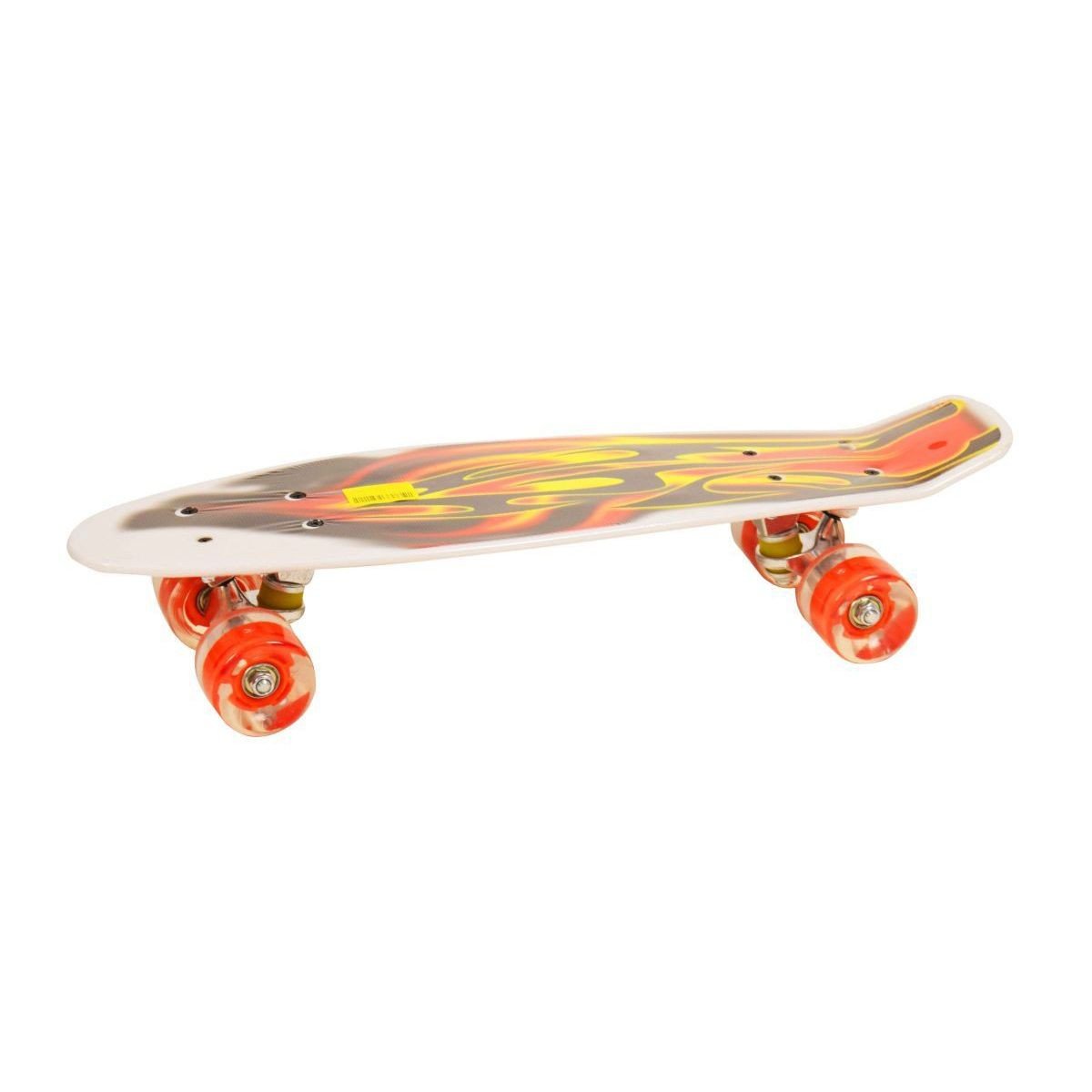 Пенні Борд. Легка дека зроблена з міцного формованого пластика. Довжина деки - 55 см., Ширина - 14 см. Колеса PU, зі світлом, d = 6 см. Максимальне навантаження 70-80 кг. Доволі міцний і забезпечить безпечну їзду дитині.