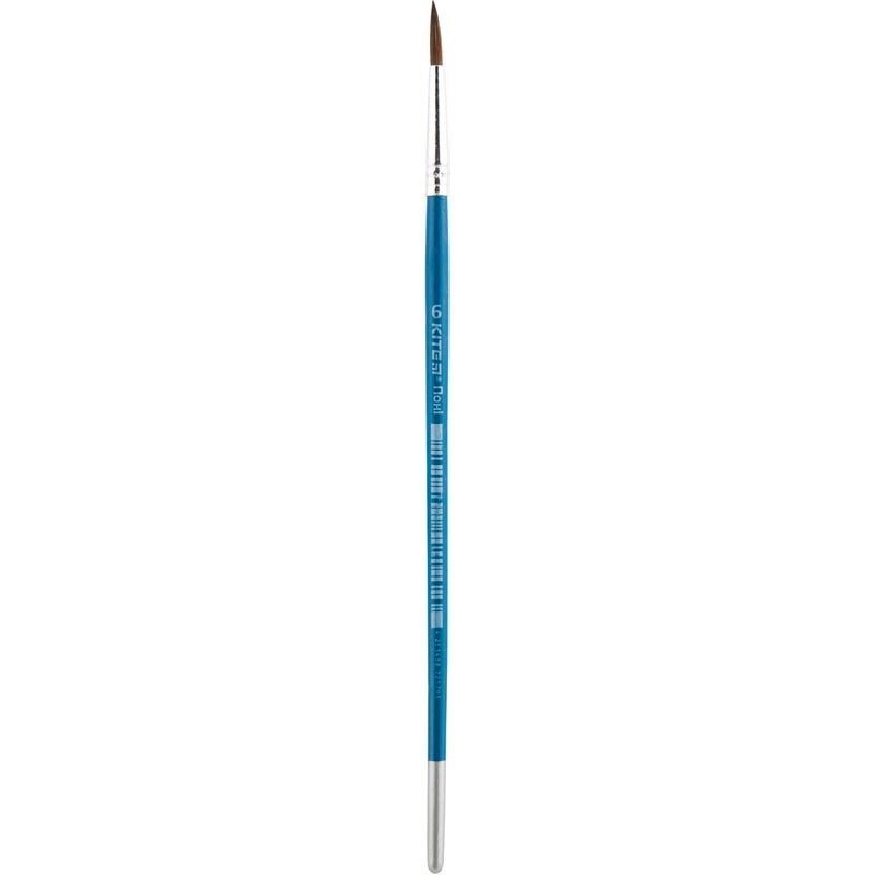 Пензель №6 Kite K18-340-P-6 допоможе дитині з легкістю втілити свою творчу задумку на папері. Пензель призначений для малювання водорозчинною фарбою - аквареллю, гуашшю або темперою. Виріб має безшовну ручку, виготовлену з березової деревини, та обрамлену алюмінієвою обоймою. Щетина виготовлена з тонкого волоса поні, вона тримає первісну форму і добре вбирає фарбу.