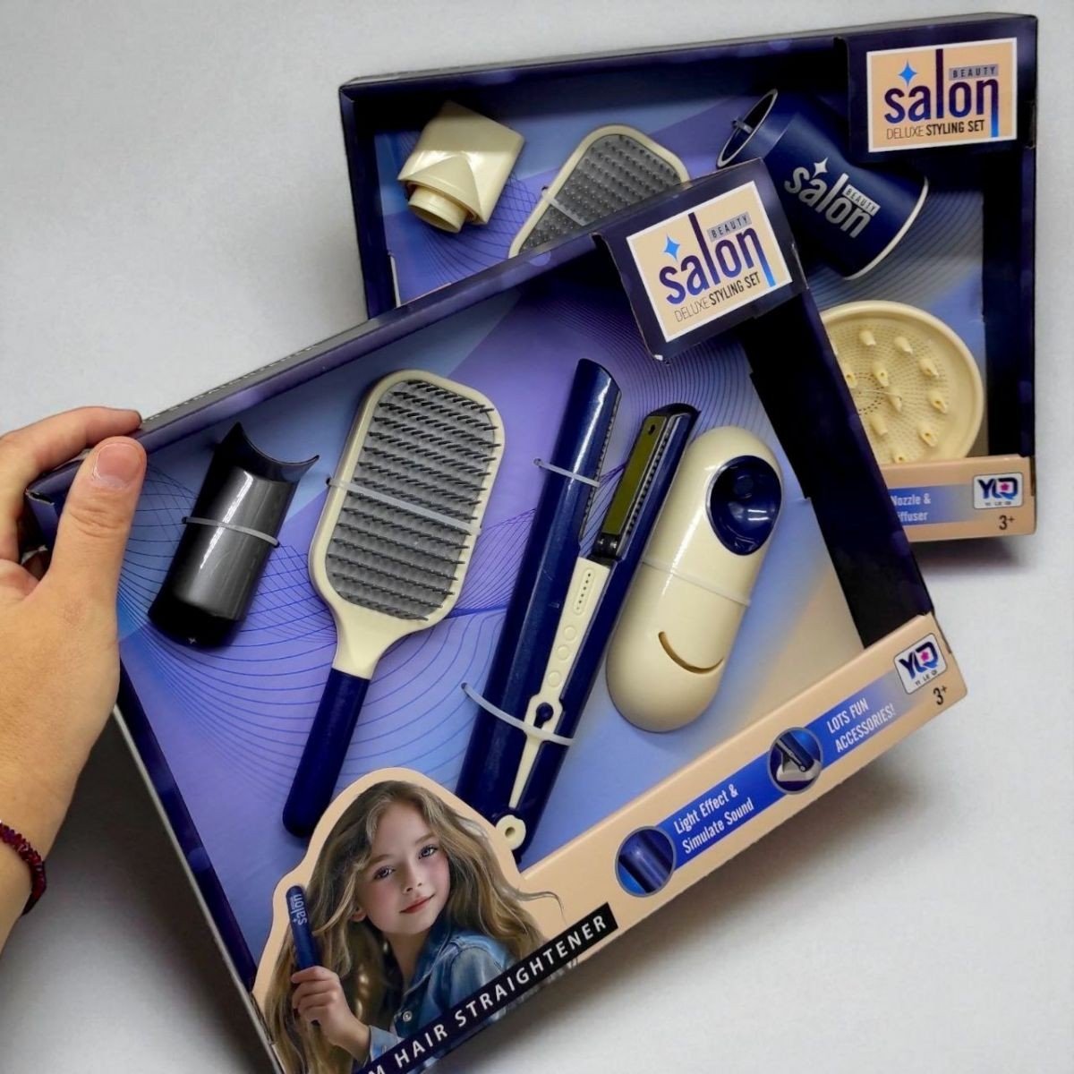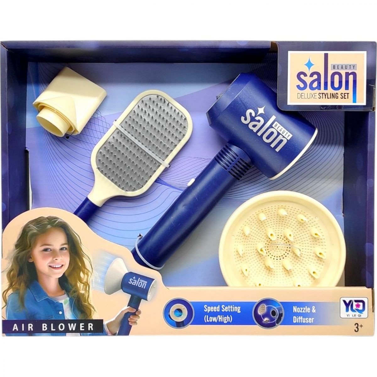 Перукарський набір для справжньої любительки моди! Ваша дитина відчує себе майстром-перукарем, коли буде створювати нові цікаві зачіски із цими іграшковими інструментами для догляду за волоссям. Усі елементи набору виконані деталізовано й реалістично, але безпечно для малюка Завдяки цьому із цим набором можна грати не тільки із ляльковим волоссям, але й з реальним, адже іграшка йому не зашкодить! До набору входить гребінець для волосся, фен, який підсвічується та імітує звук справжнього, має два налаштування інтенсивності видування повітря та дві насадки, гребінець для волосся.