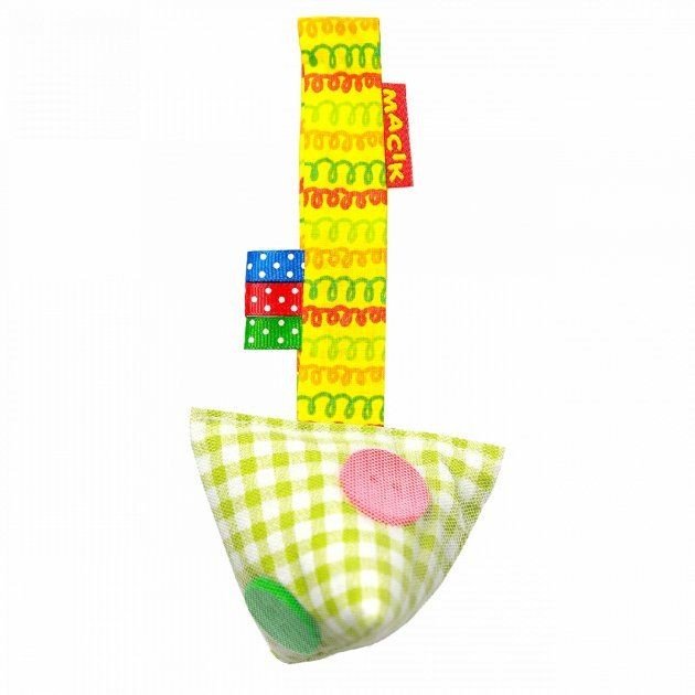 Підвіска на липучці. Безпечне дзеркало, шелестить. Завдяки ремінця з липучками, іграшку можна підвісити на коляску, на ліжечко або на автокрісло. Ручна робота.