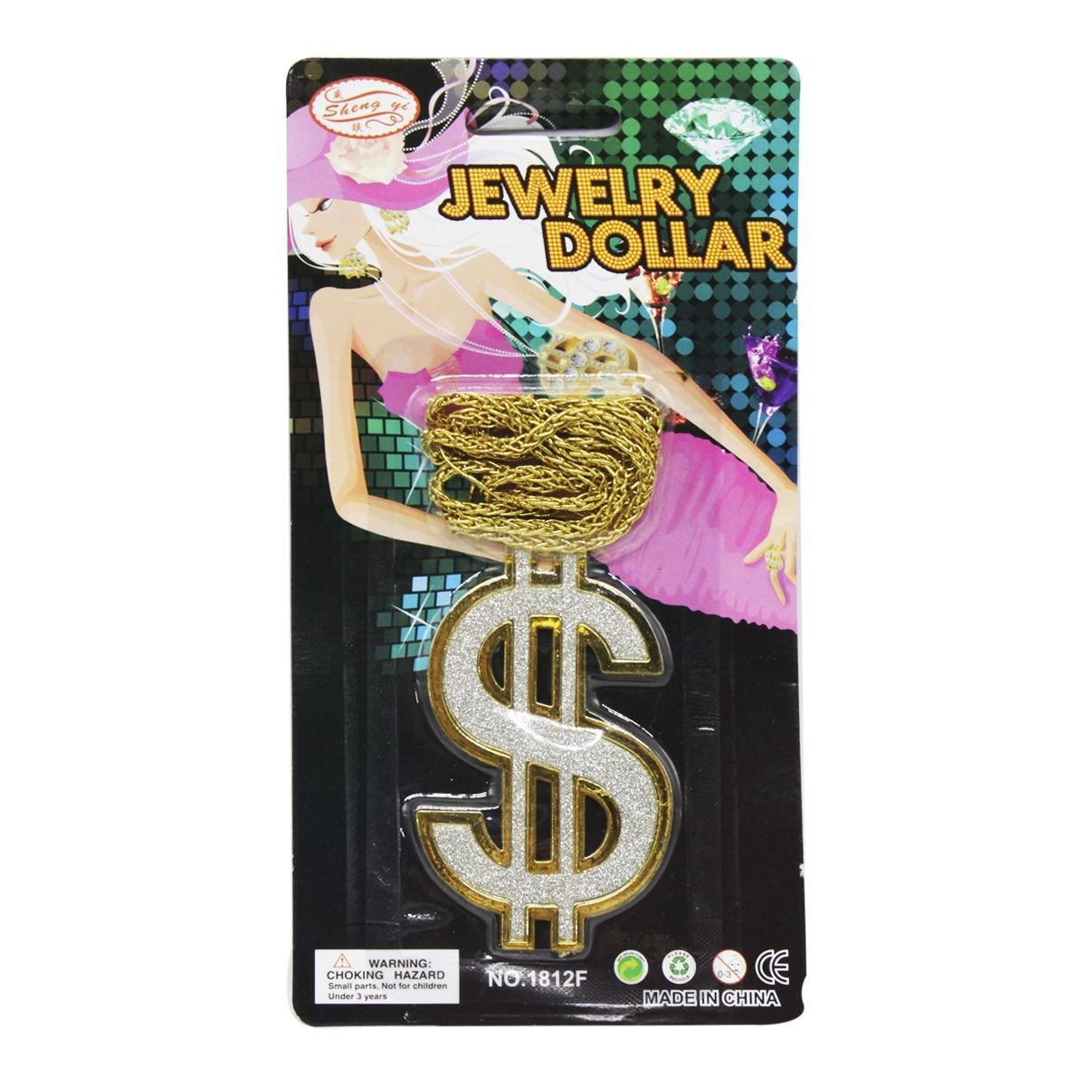 Кумедне прикраса у вигляді долара на золотому ланцюжку. У долара золотий контур, усередині оброблений блискітками. Розмір підвіски - 8х5 см.