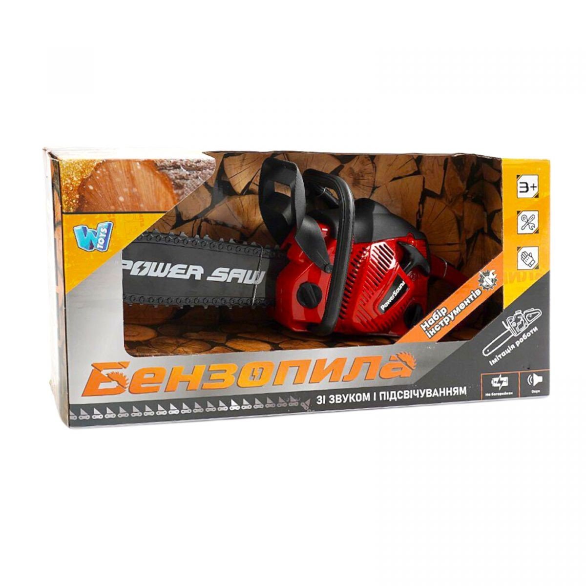 Опис Пила, звук, ланцюг рухається, на батарейках, в коробці
