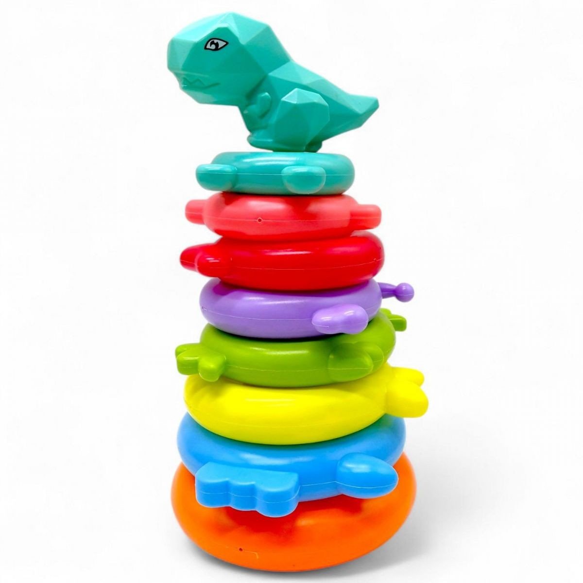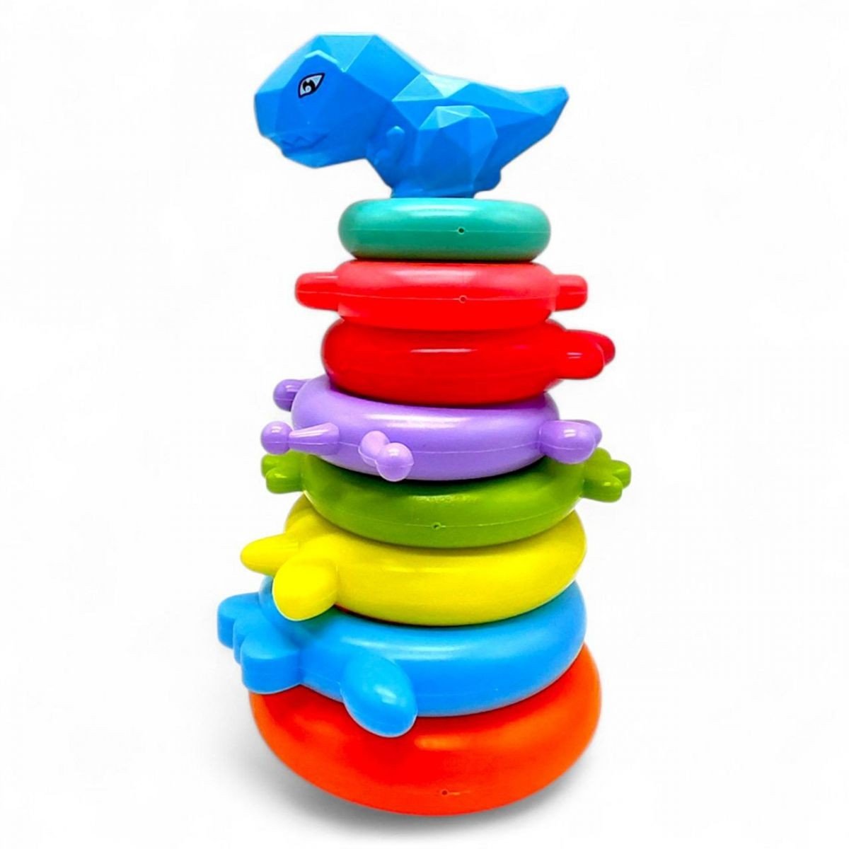 Опис Пірамідка пластикова "Динозаврик" 7 рівнів, наліпки, у сітці (27 см) мікс видів