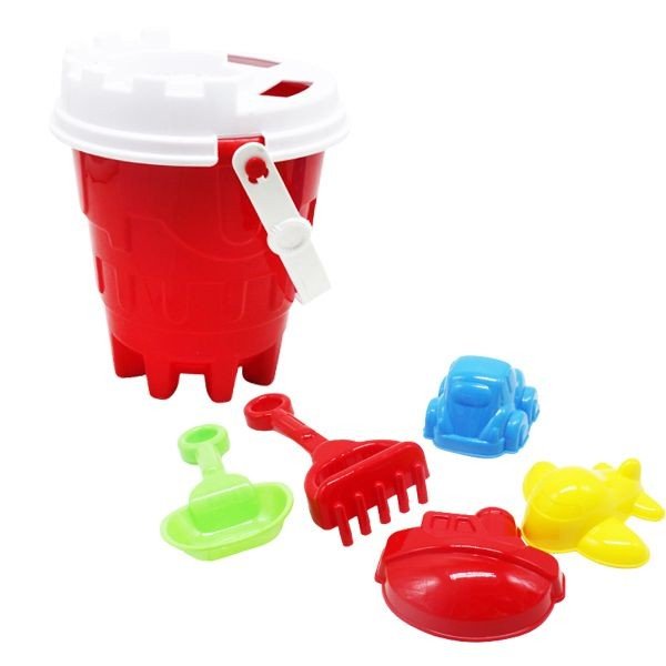 Дитячий набір для гри в пісочниці. У комплекті є: відерко, 3 формочки для піску, грабельки, лопатка та сито. Довжина грабельок та лопатки - 18 см. Виконаний із якісного міцного матеріалу.