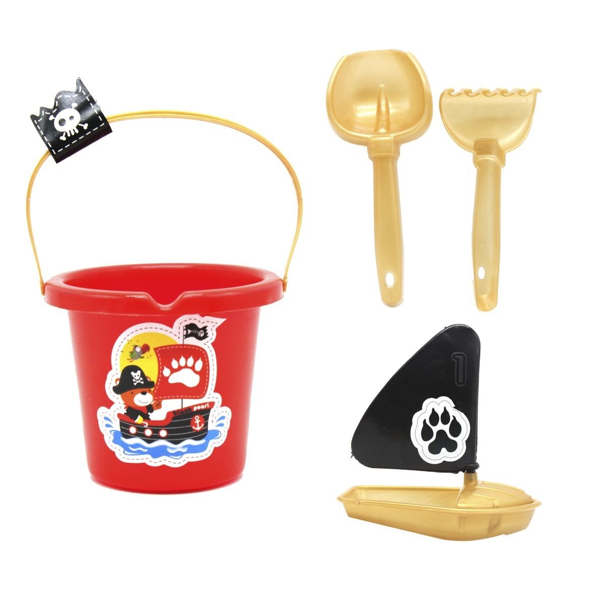 У пісочний набір входить: відро - 12 х 10 х 12 см (без урахування ручок), лопатка (17 см), граблі (15 см) і невеликий кораблик з піратськими вітрилами. (10 х 6,4 х 11 см). Підійде для гри в піску і біля води, і зробить проведений час корисним і цікавим.