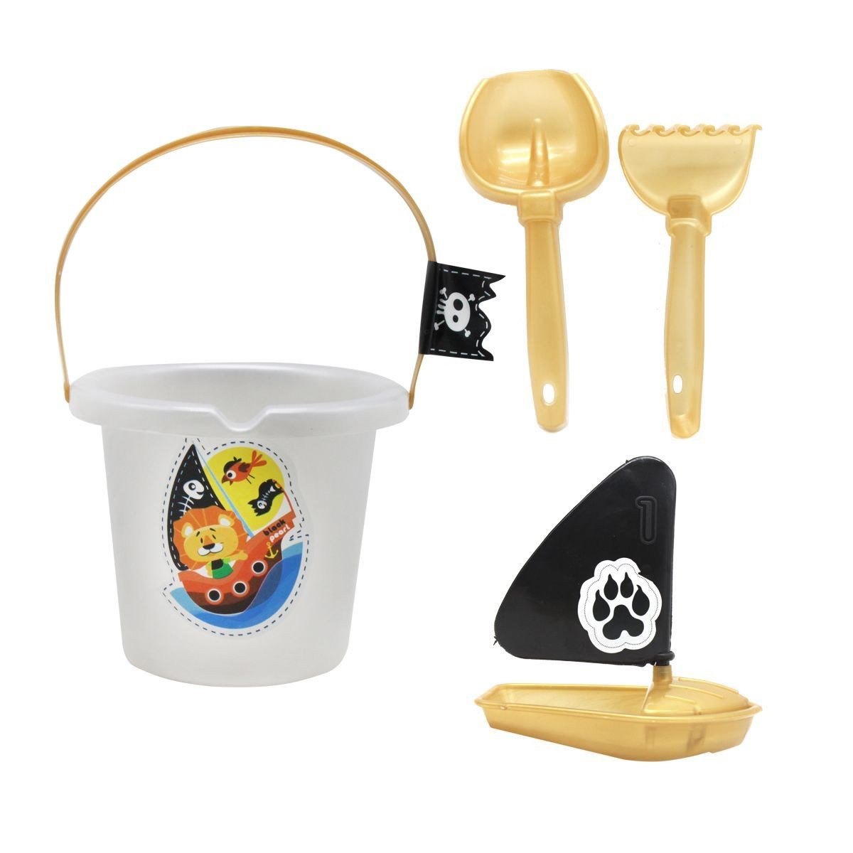 У пісочний набір входить: відро - 12 х 10 х 12 см (без урахування ручок), лопатка (17 см), граблі (15 см) і невеликий кораблик з піратськими вітрилами. (10 х 6,4 х 11 см). Підійде для гри в піску і біля води, і зробить проведений час корисним і цікавим.