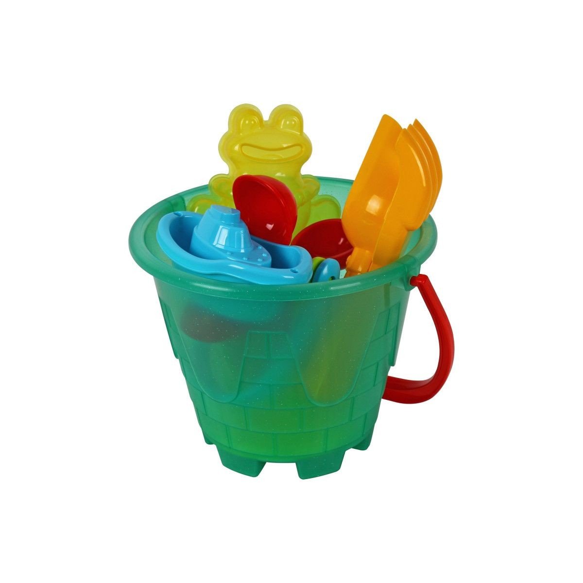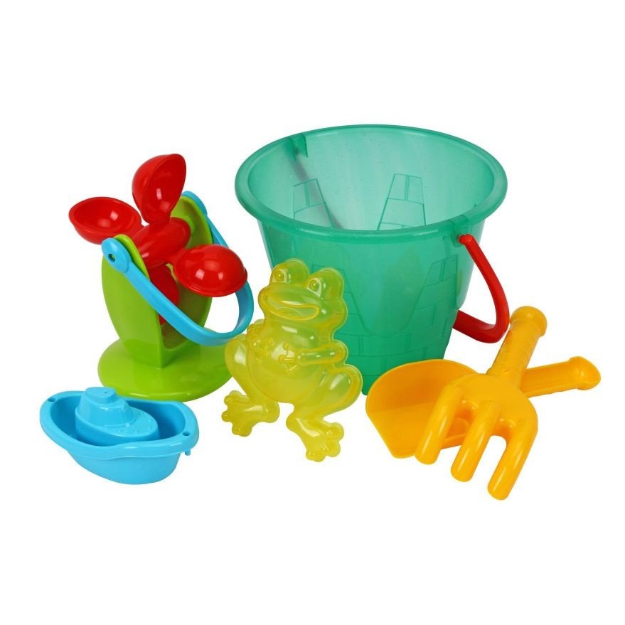 Набір для гри з піском, який ідеально підійде для пляжу чи пісочниці. У наборі присутні різноманітні фігури, маленька дитяча лопата та граблі, а також саме відерце, щоб робити найкращі піщані пасочки! Виготовлений з пластику. Рекомендовано для діток старше 1 року.