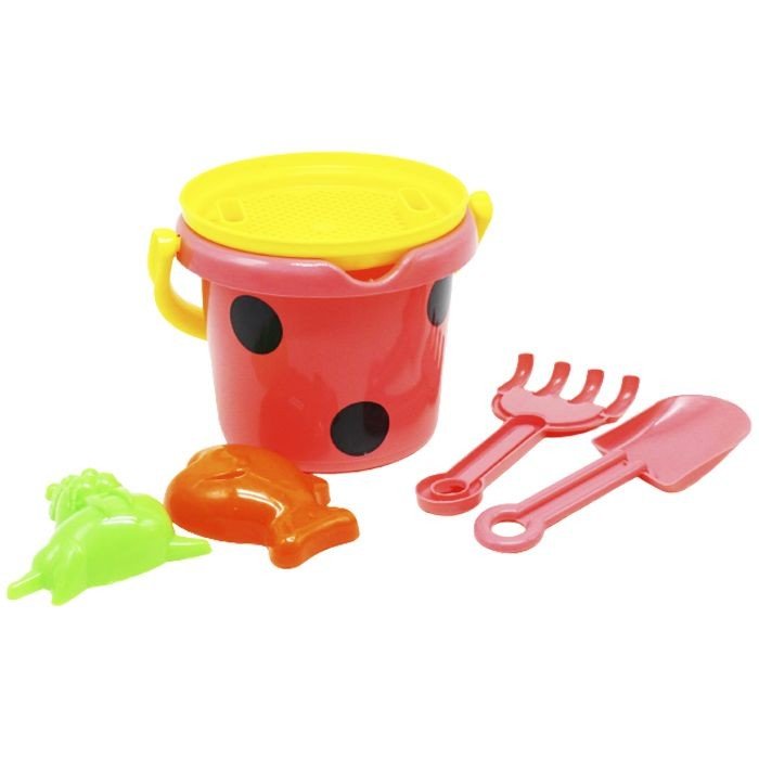 Бренд: М.Тoys Упаковка: Сітка Колір: Кораловий Вага з упаковкою: 120 г Габарити в упаковці: 14 x 16 x 20 см Габарити без упаковки: 16 x 12 x 14 см Країна виробник: Україна Матеріал: Пластик Комплектація: Відро, сито, 2 пасочки, граблі, лопатка