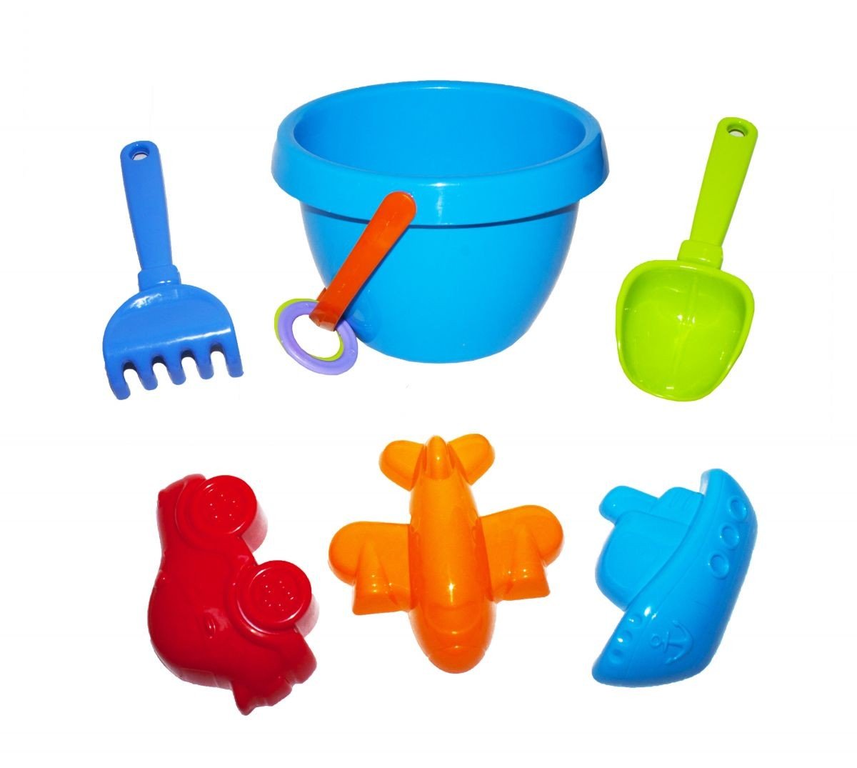 Бренд: Colorplast Упаковка: Сітка Колір: Блакитний Вага з упаковкою: 105 г Габарити в упаковці: 12 x 12 x 17 см Габарити без упаковки: 12 x 12 x 17 см Країна виробник: Україна Матеріал: Пластик Комплектація: Відро, граблі, лопатка і 3 пасочки