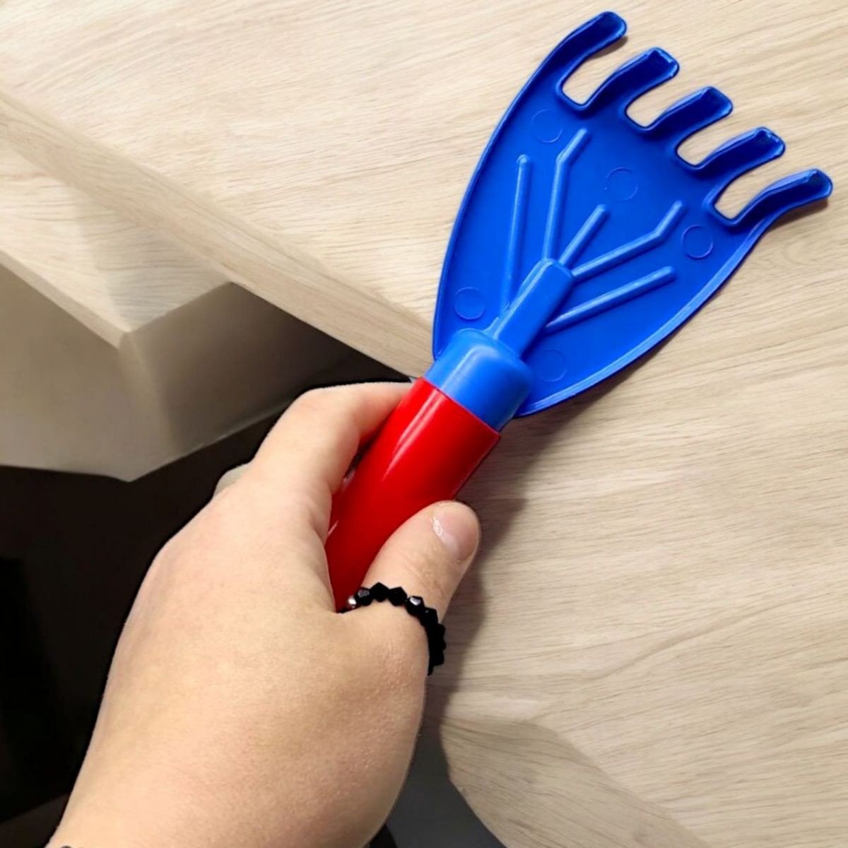 Опис Пісочний набір "Лопатка та граблі" синя+червона