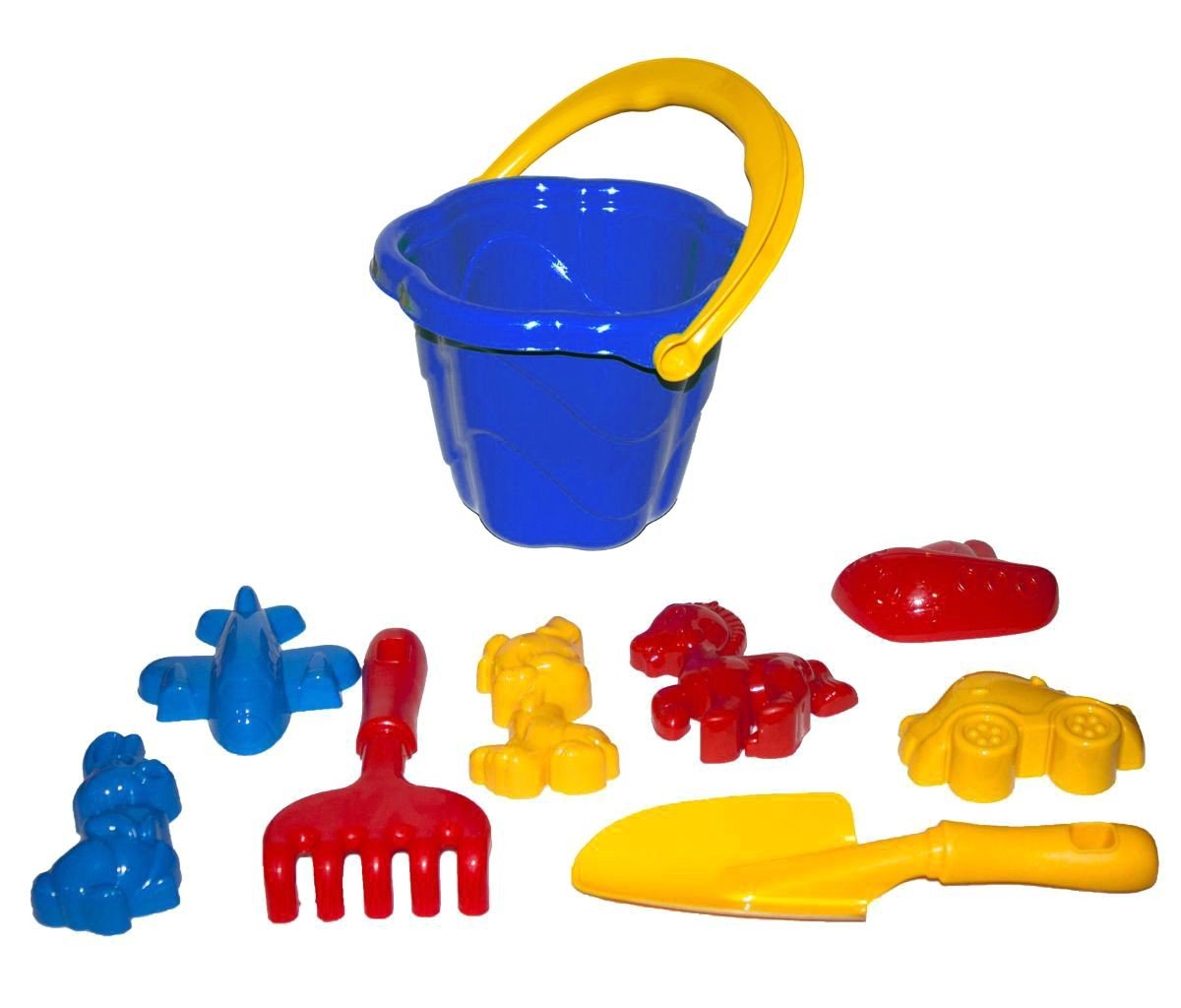Пісочний набір "Незабудка" №3. У набір входить: відро, граблі, лопатка і 6 пасочек. Підходить для гри вдома, на вулиці, в саду і на пляжі. Розмір лопатки - 24 см, грабельок - 19 см, розмір пасочки - 10 - 12 см, відро -16 х 16 х 12,5 см.