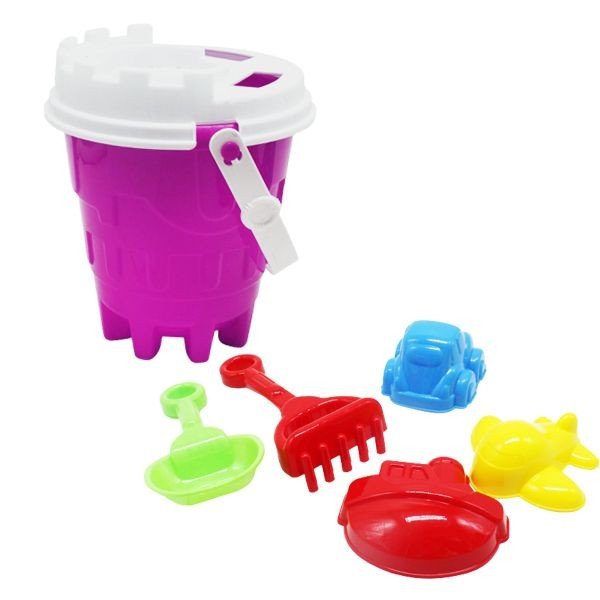 Комплектація: Відерко, 3 формочки для піску, грабельки, лопатка та сито