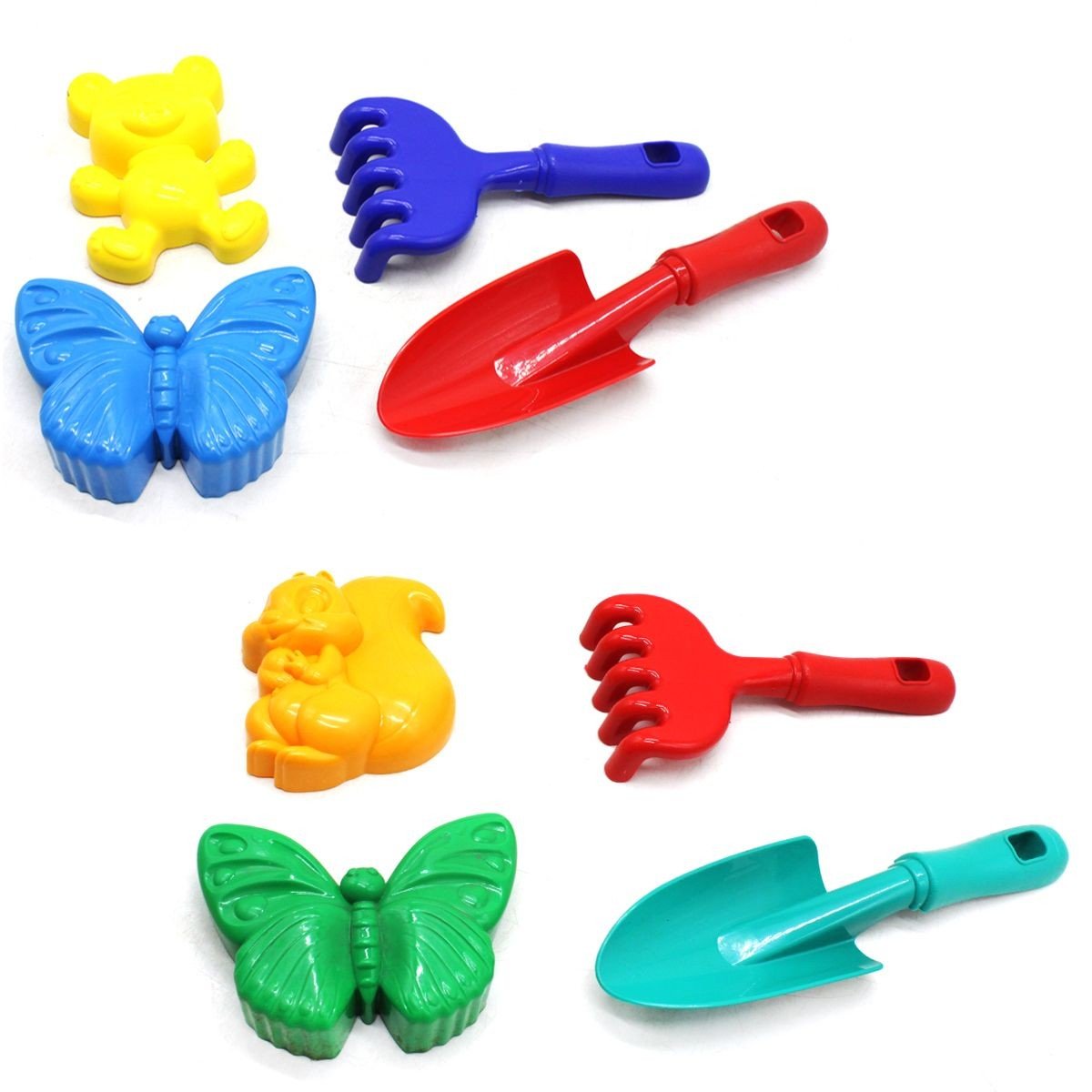Бренд: Colorplast Упаковка: Сітка Колір: Різнобарв'я Вага з упаковкою: 92 г Габарити в упаковці: 25 x 9 x 8 см Габарити без упаковки: 25 x 8 см Країна виробник: Україна Матеріал: Пластик Комплектація: Лопатка, граблі, 2 пасочки
