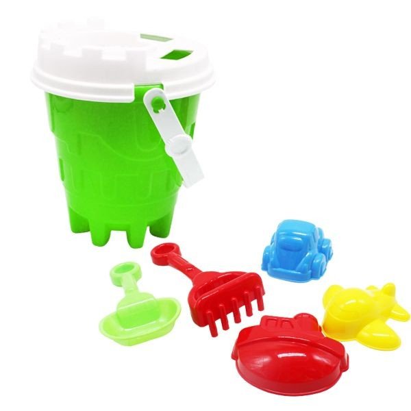 Комплектація: Відерко, 3 формочки для піску, грабельки, лопатка та сито
