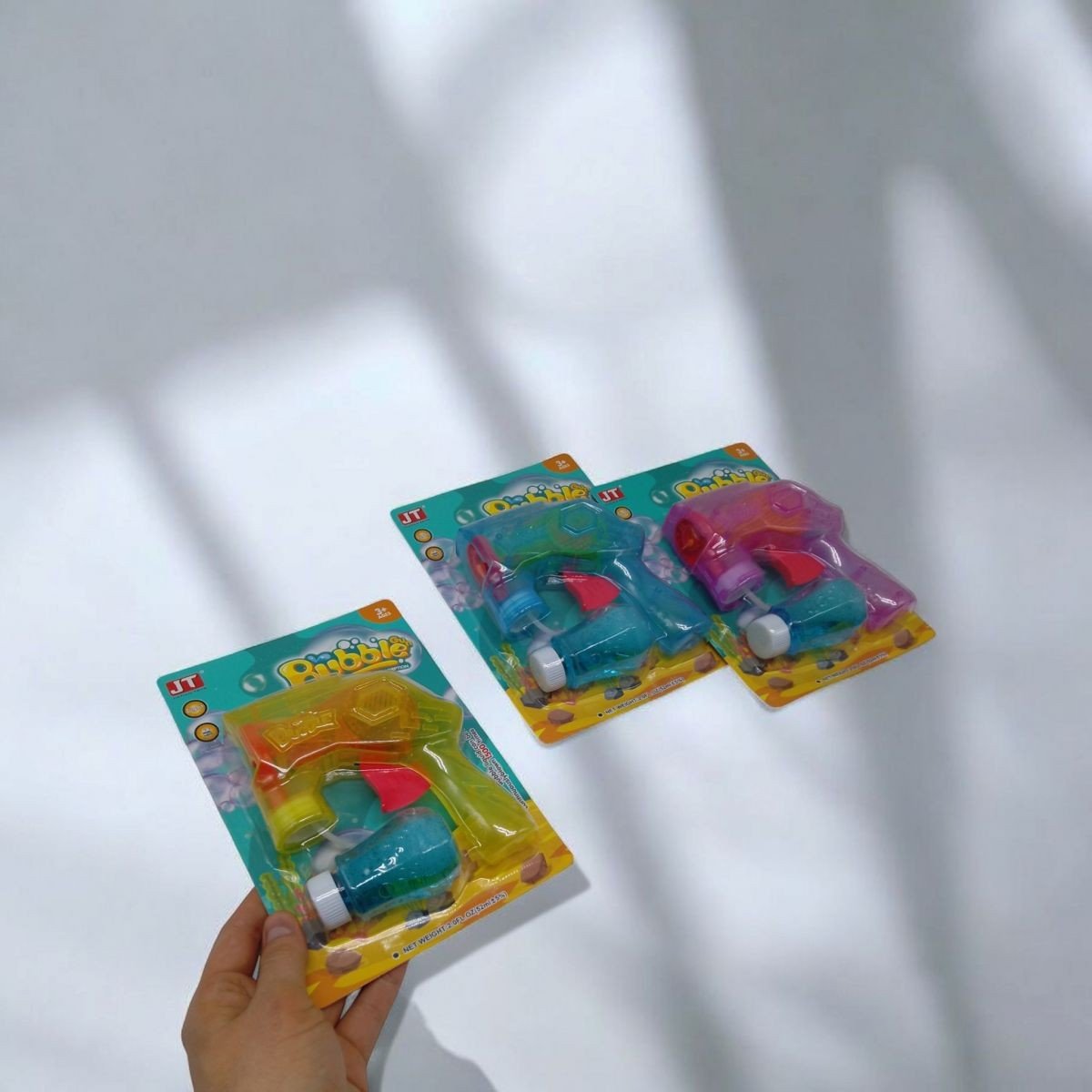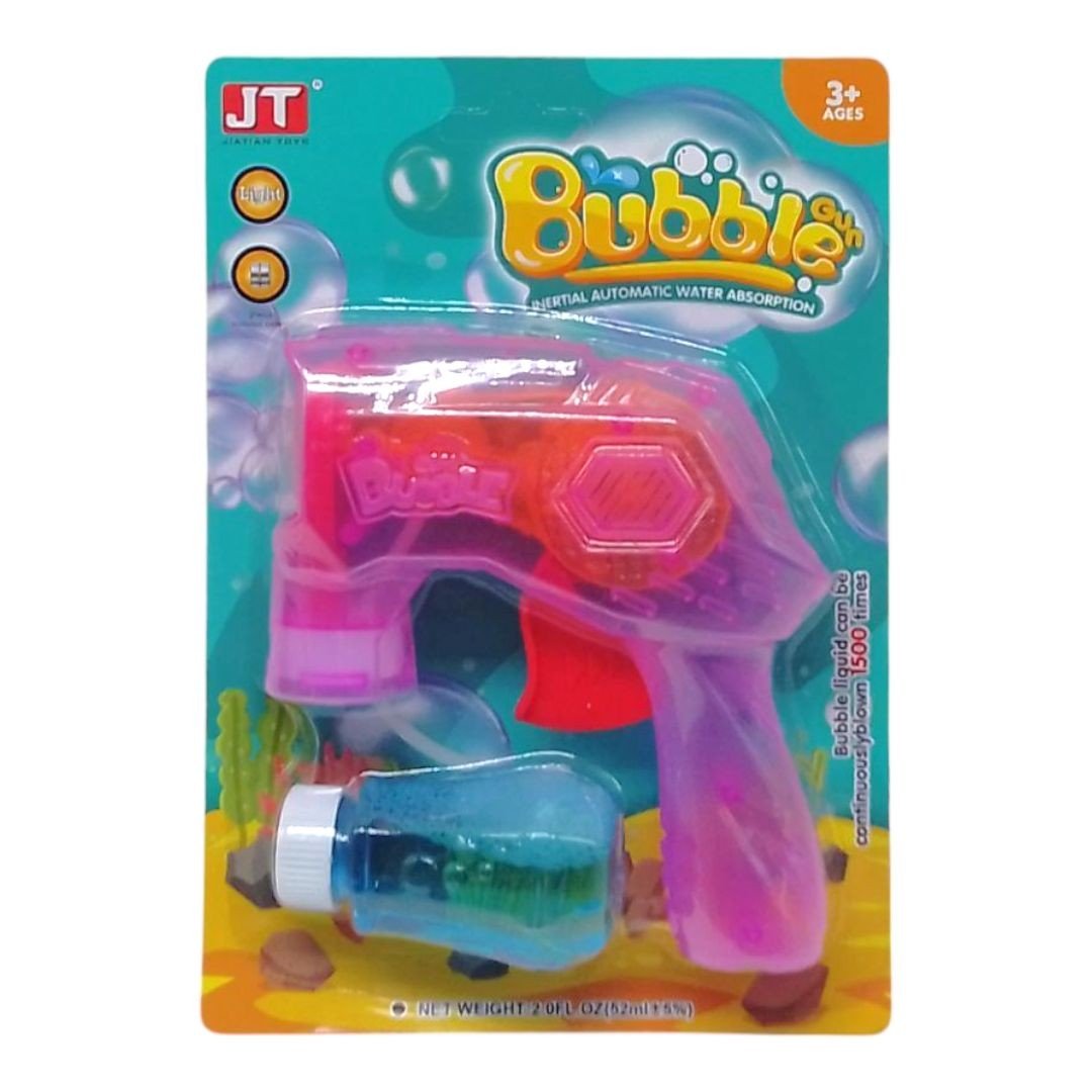 Пістолет для мильних бульбашок — яскрава іграшка, яка подарує море веселощів! Просто прикрутіть баночку з розчином до пістолета — і натискайте на курок, щоб запустити безліч легких, блискучих бульбашок. З підсвічуванням. Ідеально підходить для прогулянок, вечірок і свят.