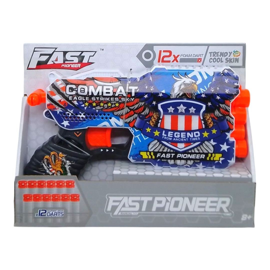 Бренд: Fast Pioneer Упаковка: Коробка Колір: Різнобарв'я Вага з упаковкою: 285 г Габарити в упаковці: 17.5 x 24 x 5 см Країна виробник: Китай Матеріал: Пластик Комплектація: Пістолет, 12 патронів