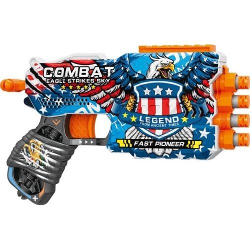 Опис Пістолет іграшковий "Бойовий орел", механічний, чотириствольний з мʼякими набоями, 23 см