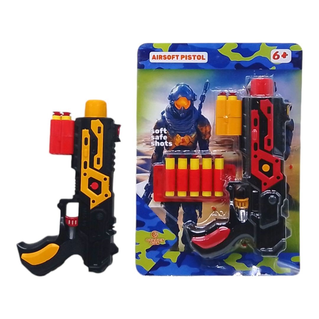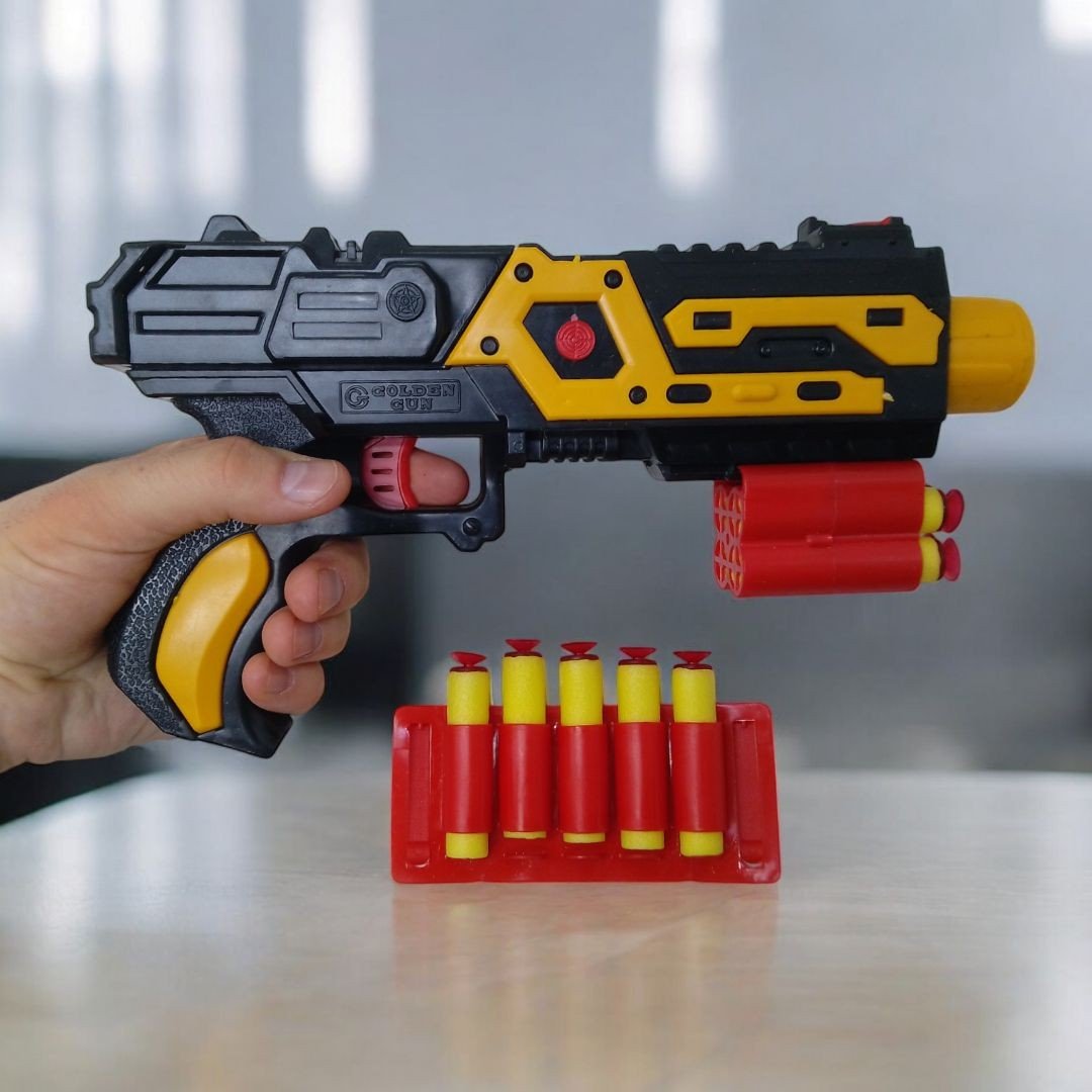 Бренд: GOLDEN GUN Упаковка: Планшет Колір: Різнобарв'я Вага з упаковкою: 270 г Габарити в упаковці: 24 x 34 x 5.5 см Країна виробник: Китай Матеріал: Пластик Комплектація: Бластер, 9 патронов