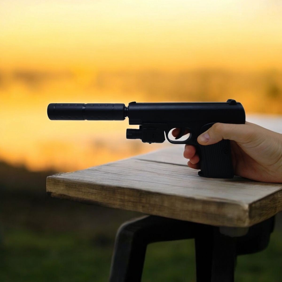 Опис Пістолет з глушником, лазерним прицілом і кульками