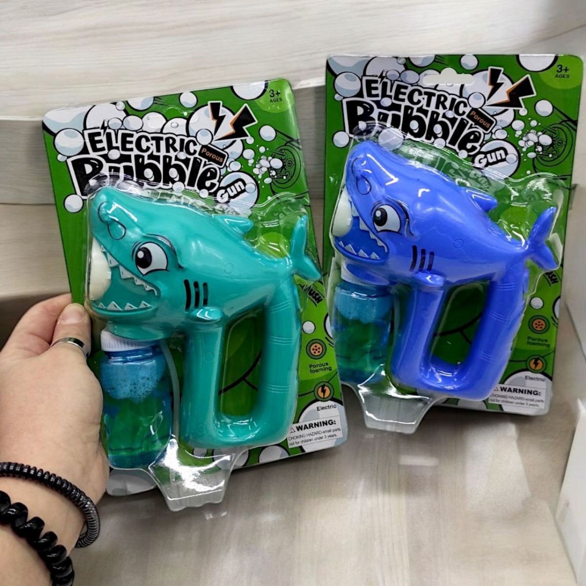 Набір для пускання мильних бульбашок "Чарівний пузирятор". У комплекті: запускалка у вигляді акули та 1 баночка з мильним розчином. Щоб використовувати запускалку, потрібно вставити у відсік 4 батарейки АА (нема в комплекті), відкрутити кришечку та зняти захисну плівку з баночки. Далі потрібно вставити трубку у пляшечку і закріпити її, закрутивши проти годинникової стрілки. Щоб почати запускати бульбашки, потрібно натиснути на гачок кілька разів. Розмір іграшки: 15х13х6 см.