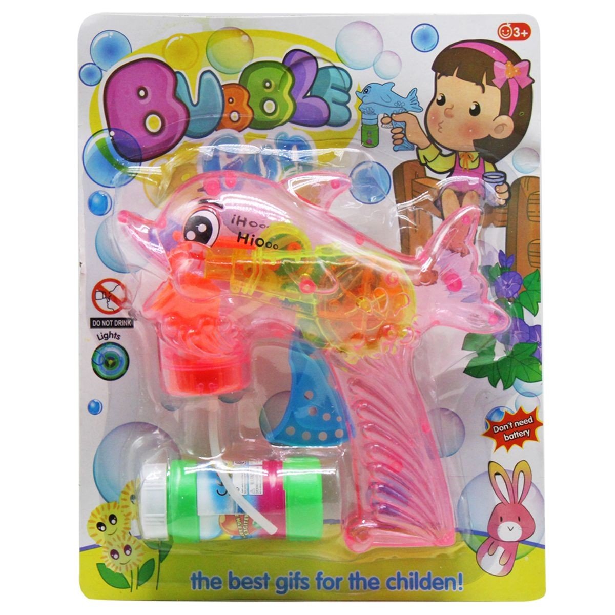 Пістолет виконаний у вигляді прозорого дельфіна. Для роботи іграшки не потрібні батареї, механізм спрацьовує при натисканні на курок. У комплекті є пістолет та дві пляшечки мильного розчину. Інструкція використання є на упаковці. Виконаний із якісного пластику. Для дітей віком від 3-х років.